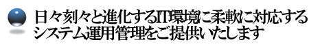 当社は特定のベンダーに偏らない柔軟な対応性と高い技術力でお客様のシステム運用にお役立ち致します。 また、安定運用は日々の改善があってこそであり、積極的な改善提案をさせて頂きます。 最近では、システム設計や構築・開発の段階から当社が参画し、導入、導入後のサポート・運用まで一貫してご依頼されるユーザー様が増えています。