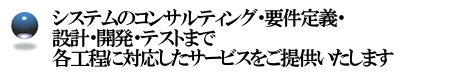 ・コンサルティング ・要件定義 ・基本設計 ・詳細設計 ・開発 ・テスト ・デバッグ ・その他 |